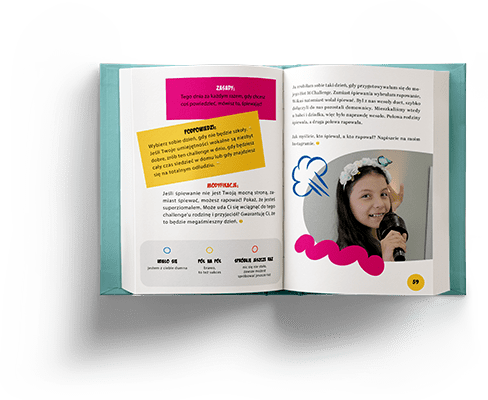 Jak pewnie wiecie, bardzo lubię wypróbowywać różne challenge, ale rodzice nie zawsze mają czas, by nagrać z tego odcinek. W książce zaprezentuję wam challenge (wyzwania), które widzieliście na moim kanale, ale też takie, które zrobiłam sobie, gdy rodzice pracowali, oraz te, które dopiero zamierzam wypróbować. Challenge mają sześć poziomów trudności, a pod każdym z nich znajdziecie trzy rubryki, w których zaznaczycie, jak Wam poszło. Co kilkanaście stron znajdziecie również kilka ciekawostek o mnie.