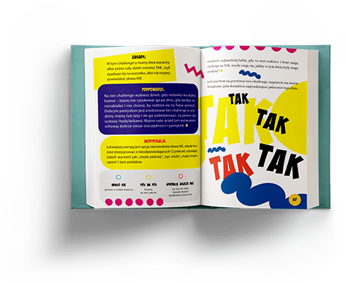 w tej książce twoje dziecko znajdzie 52 wyzwania do wykonania, po jednym na każdy weekend roku. Podejmowanie przez dziecko wyzwań wzmacnia jego charakter, uczy wytrwałości, cierpliwości, dążenia do celu. Dzięki nim dziecko przeżywa pierwsze sukcesy i porażki. Uczy się samodzielności i samozaparcia, a ponadto spędza ciekawie czas, ma okazję przeżyć nowe doświadczenia. Niektóre z tych challenge'ów twoje dziecko zapamięta do końca życia i będzie miło wspominało ten czas spędzony na wspólnej zabawie z Tobą i przyjaciółmi. Nie bójcie się nowych wyzwań i przede wszystkim dobrze się bawcie!